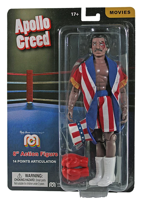 Apollo Creed was the brash, vocal, and theatrical undisputed heavyweight world champion, until offering an underdog by the name of Rocky Balboa a chance in the ring. Wearing all American boxer trunks and top hat, you can now add Apollo to your Mego Collection and see if Rocky is up for a re-match.