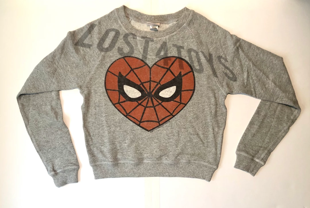 Junk Food brand Marvel Spider-Man Women’s sweatshirt. Crop style with Spider-Man’s mask in a heart shape. Soft blend