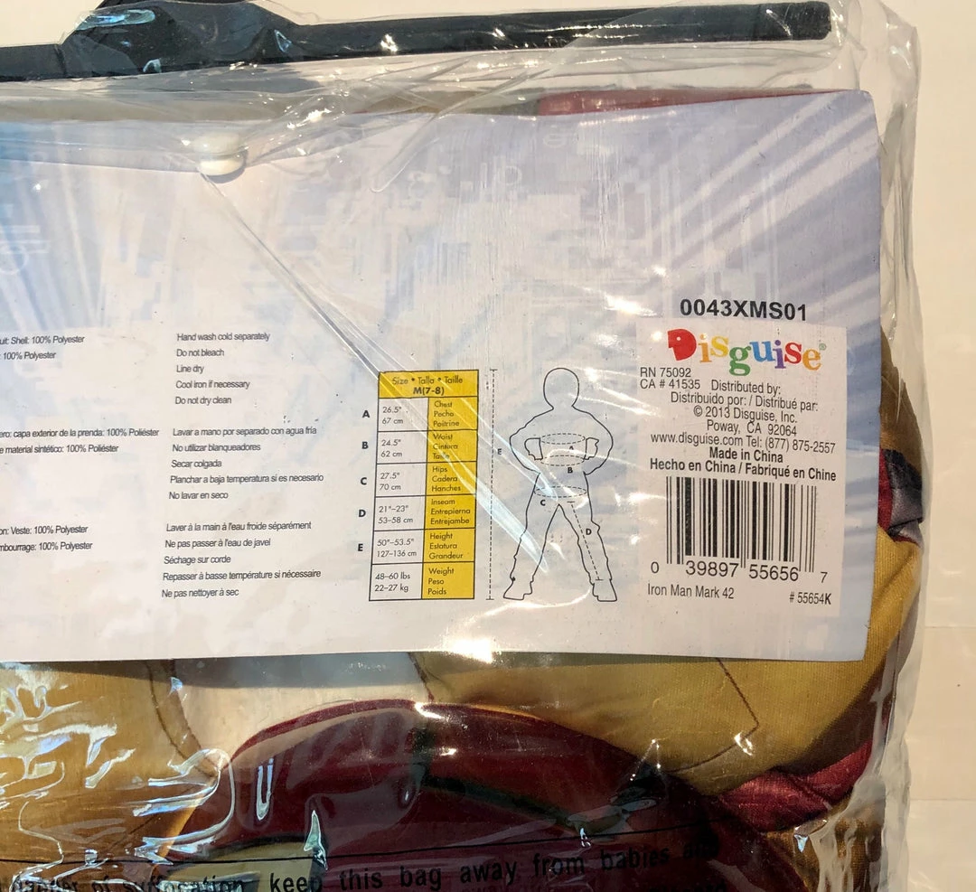 Disguise brand Marvel bring you this premium Kids Iron Man costume from the movie Iron Man 3. This is the mark 42 armor. Details include puffed muscles and a glowing Chest Reactor Arc.