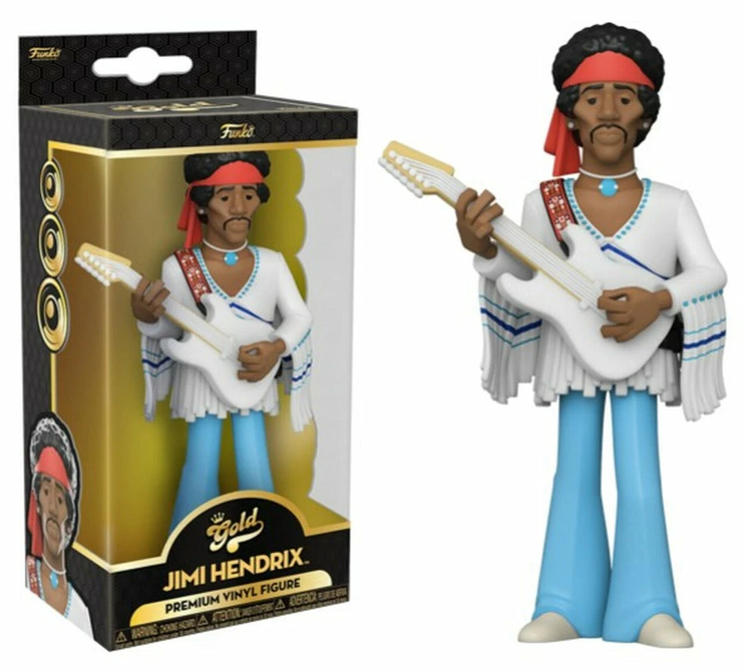 Go for GOLD in your music collection with the new Funko GOLD, premium vinyl figure of electric guitar virtuoso, Jimi Hendrix. Jimi is here to turn up the volume to 11 in your collection as this 5-inch tall collectible. Wearing his cream and cool blue outfit, Jimi Hendrix is a surefire showstopper. GOLD is the perfect way to commemorate some of your favorite, iconic music artists in your collection, and each figure comes in a sleek, display-ready box that is easy to stack with other GOLD collectibles. Vinyl figure is 5-inches tall.