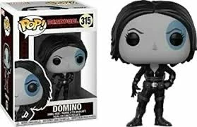 From Deadpool Parod, Domino, as a stylized POP vinyl from Funko! Figure stands 3 3/4 inches
