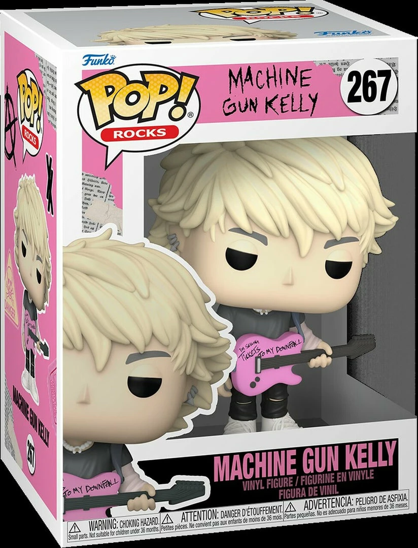 Get ready for the next big artist for your music collection! It’s Pop! Machine Gun Kelly, ready to rock with his pink guitar in hand—the one made famous from the album cover Tickets to My Downfall. In fact, Pop! Machine Gun Kelly’s guitar is signed with the printed words “I’m Selling Tickets to My Downfall.” Vinyl figure is approximately 3.91-inches tall.