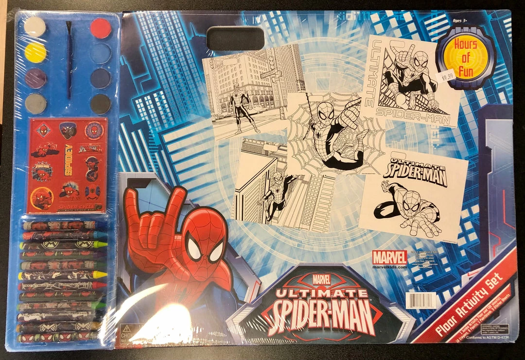 Fun for all ages! This floor activity set includes 1 jumbo pad with 20 sheets, 12 crayons, an 8 color watercolor set, 1 paintbrush and 5 sticker sheets.