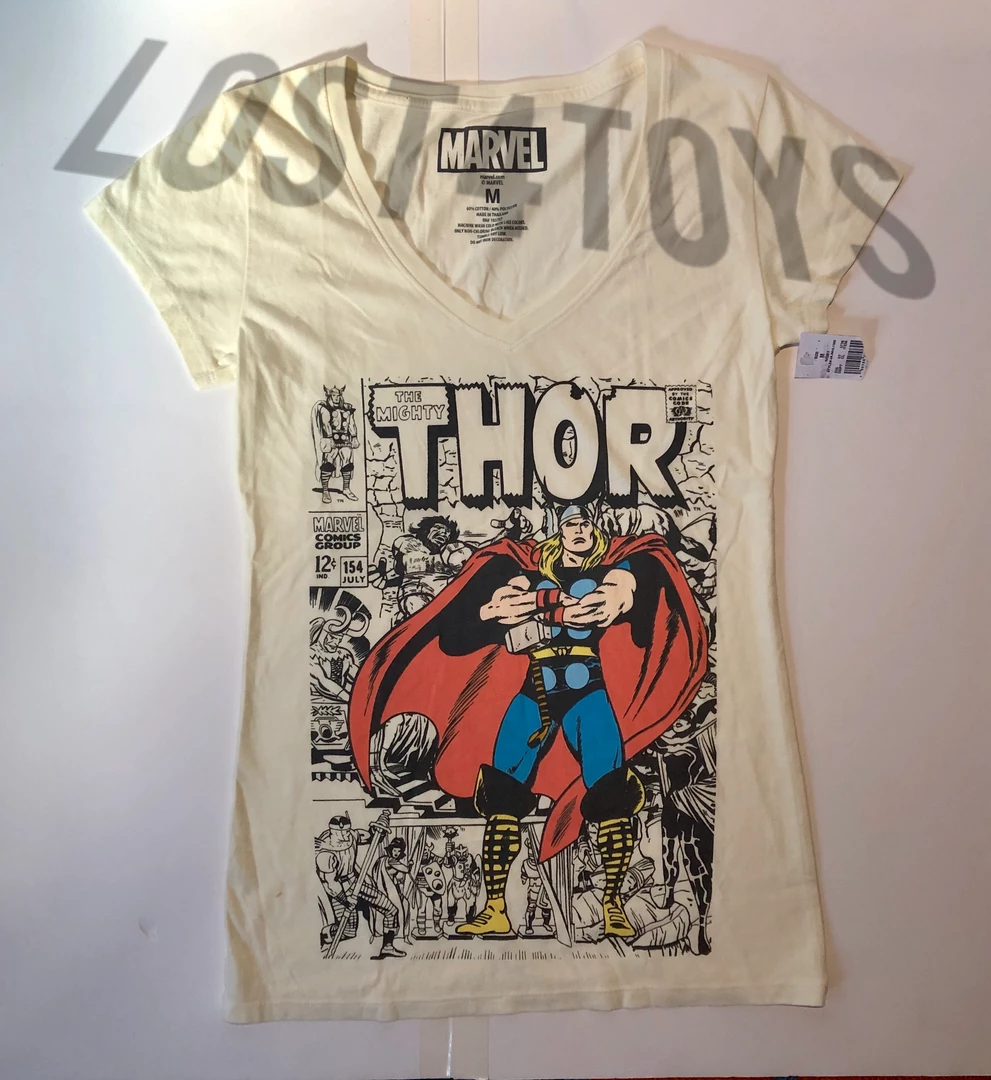 Marvel The Mighty Thor Women’s V-Neck tee. Featuring classic comic book cover art.