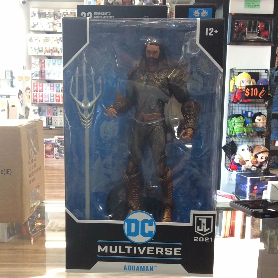 From TMP/McFarlane’s Toys. This incredibly detailed 7″ scale figure is based off Aquaman‘s look in the Justice League Movie! Designed with Ultra Articulation with up to 22 moving parts for full range of posing and play, included are his trident and a base, along with a collectable art card with movie photography of Aquaman on the front, and character biography on the back! Showcased in DC Justice League themed window box packaging. Collect all McFarlane Toys DC Justice League Figures!