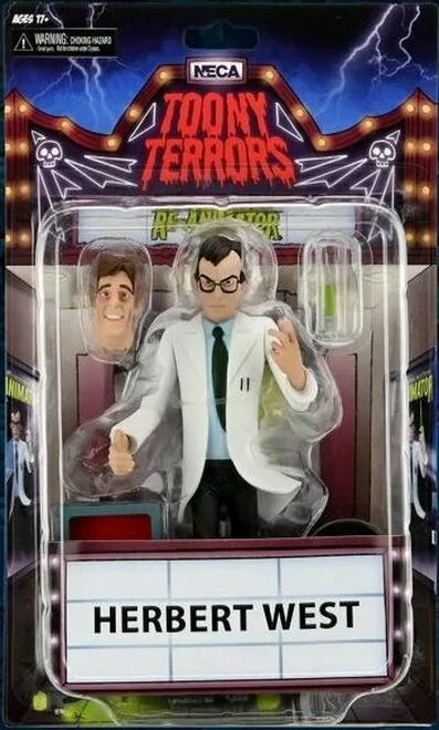 Standing approximately 6 inches tall, the Series 6 action figure assortment includes the iconic Elvira (Mistress of the Dark), Captain Blake (The Fog), Herbert West (Re-Animator) with accessory tray and head, and The Miner (My Bloody Valentine) with accessory pickaxe (all sold separately).