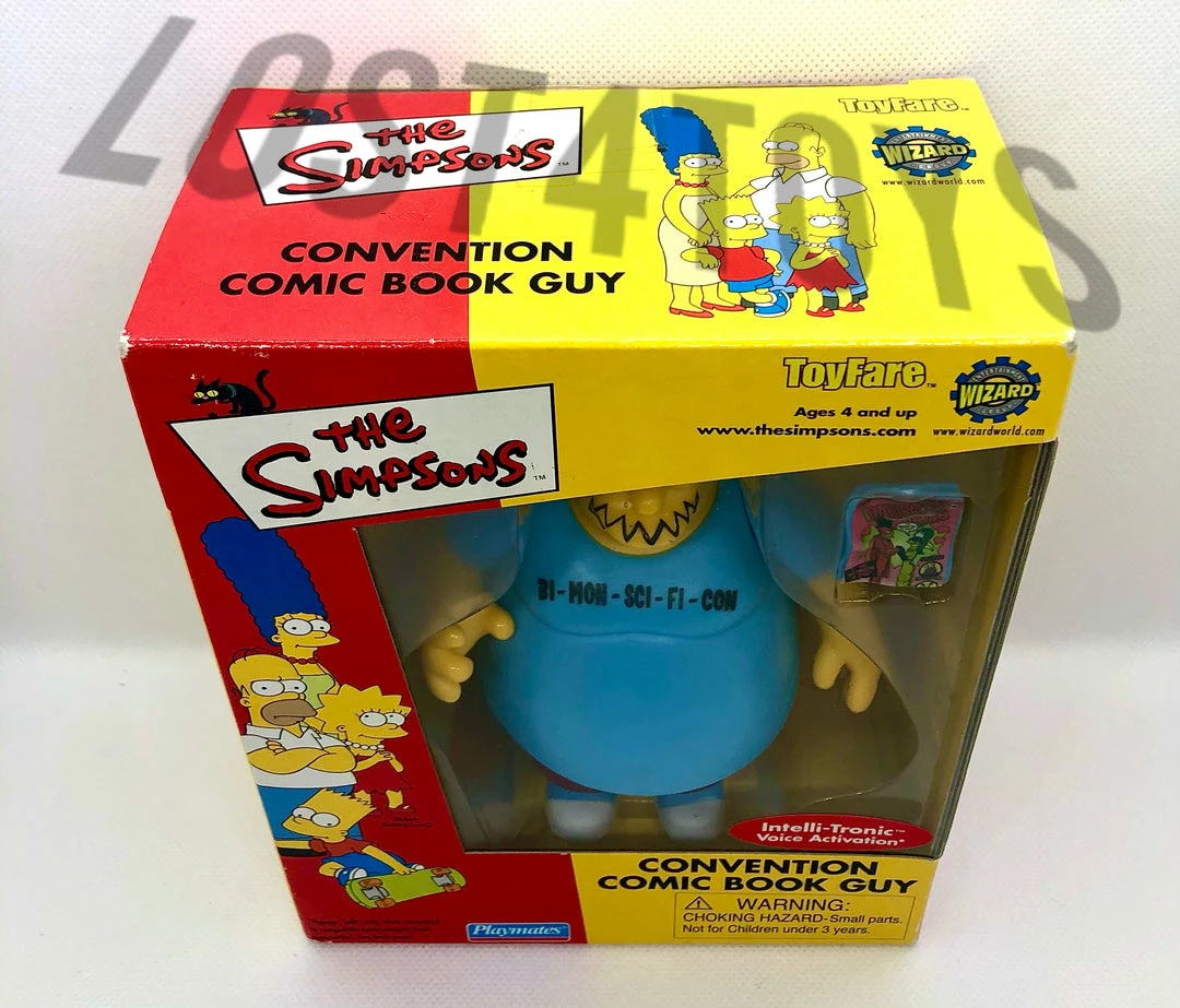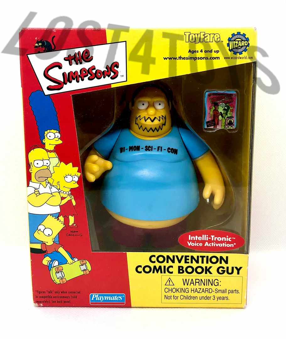 Playmates The Simpsons ToyFare Mail In Exclusive ‘Convention Comic Book Guy’. Works with many playsets utilizing the Intelli-Tronic Voice Activation.