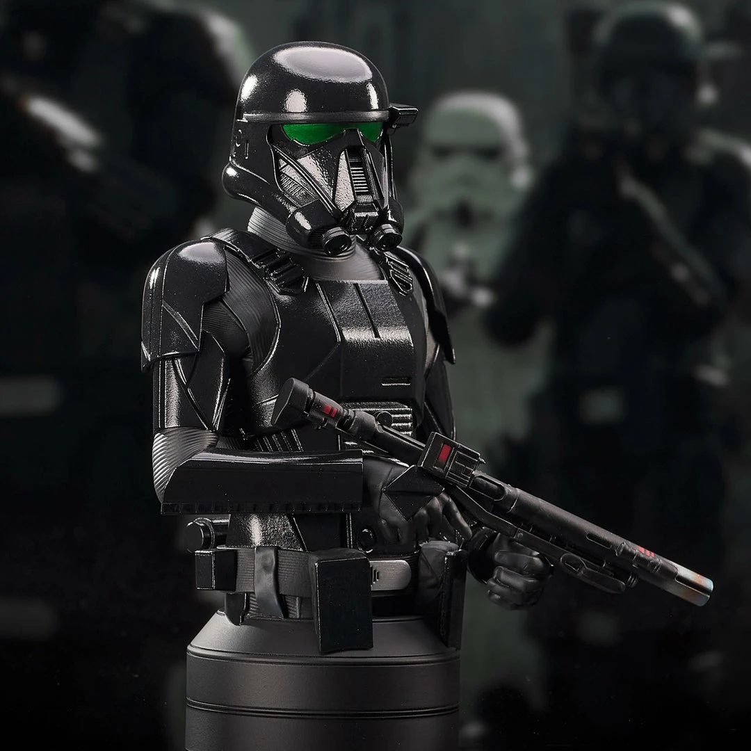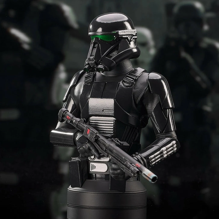 A Gentle Giant Ltd. release! These stormtroopers are back in black! The Death Trooper is an elite stormtrooper, seen in Star Wars; Rogue One and The Mandalorian as well as numerous video games and comic books. Wearing all black, they strike a frightening appearance, and now they’re the newest 1/6 scale mini-bust from Gentle Giant Ltd.! Measuring approximately 7 inches tall, this resin bust features detailed sculpting and paint applications. Limited to only 2000 pieces, it comes packaged in a full color box with a numbered certificate of authenticity. Designed and sculpted by Gentle Giant Ltd.!