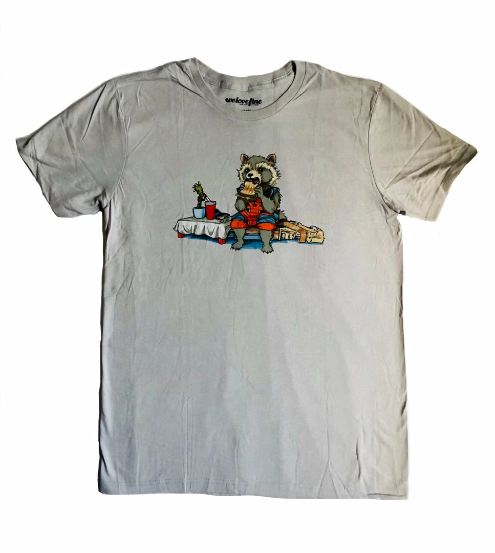 From trusted brand ‘welovefine’ is this short sleeve Men’s T-Shirt featuring Rocket Raccoon and Baby Groot from Guardians of the Galaxy sitting down for snack time!